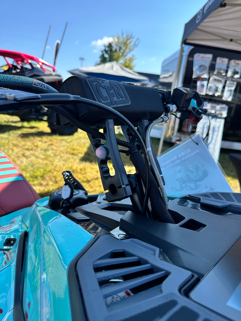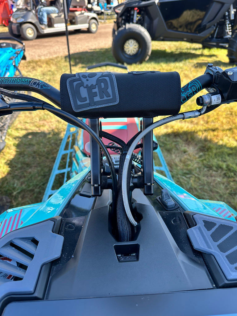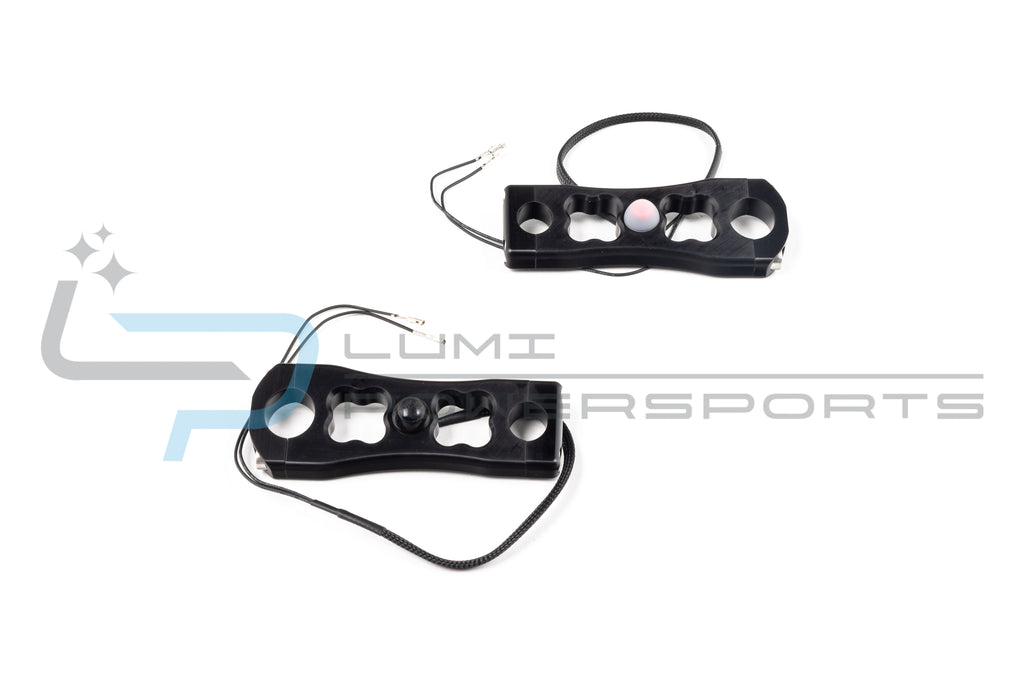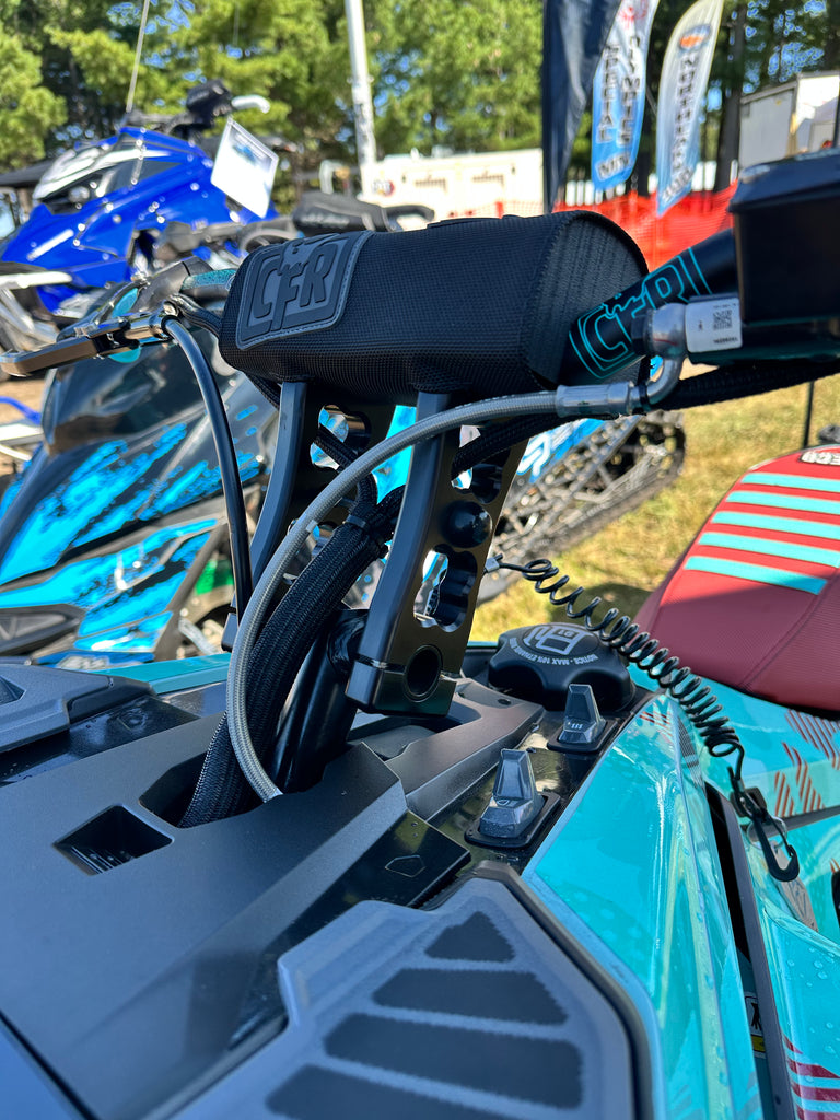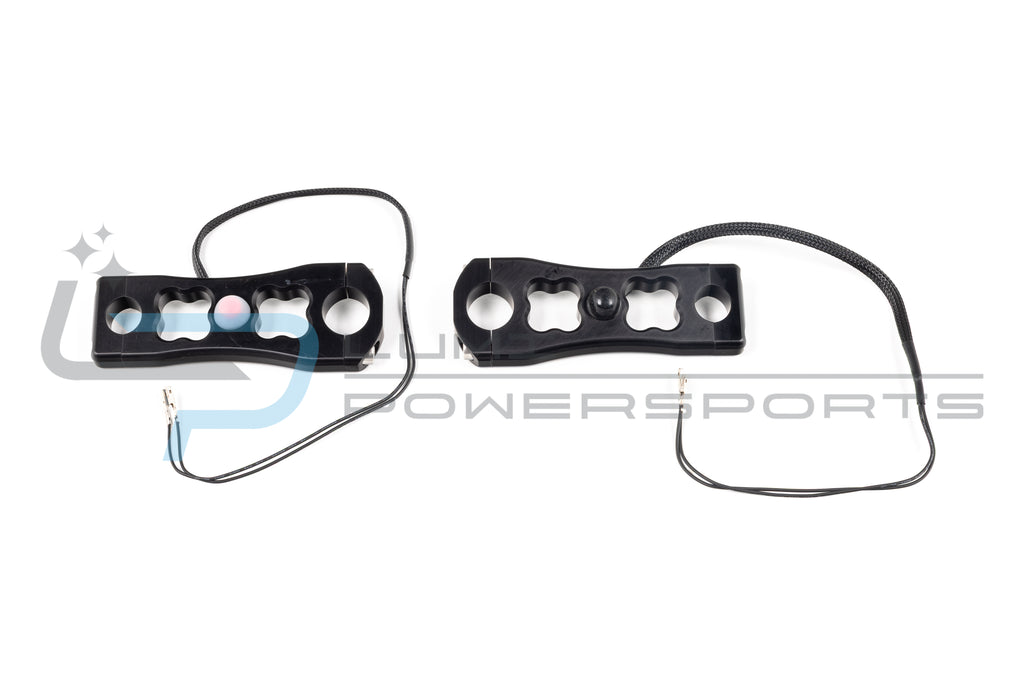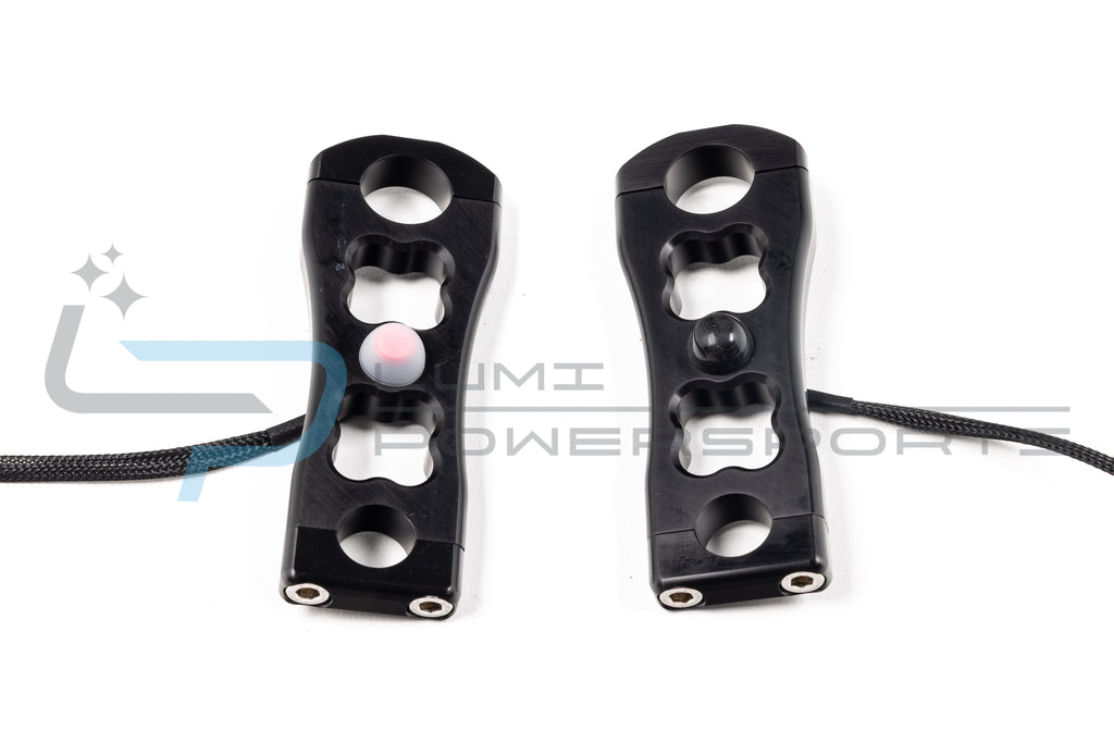 3" or 4" Riser with integrated reverse and kill Switch. Clean up the business of your Ski Doo handlebars with a new riser that includes a stealthy push button engine shutoff switch (kill switch), on the throttle side riser and a reverse button switch on the brake riser side. No more accidently bumping the kill switch in awkward situations. Kit includes all necessary hardware push buttons installed.